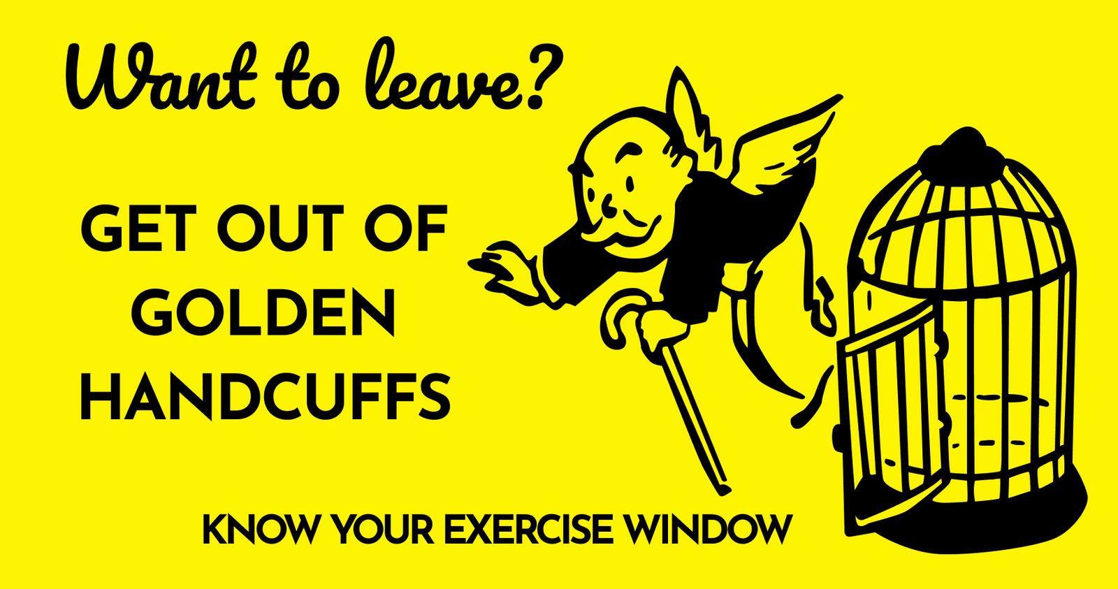 Another way to avoid the golden handcuffs problem is allow employees to purchase shares before the options are vested. Under an early exercise program, employees can purchase up to their entire grant immediately. If you leave the company before your vesting is complete, the company has the right to buy back the unvested shares at either the strike price or the current market value, whichever is lower.