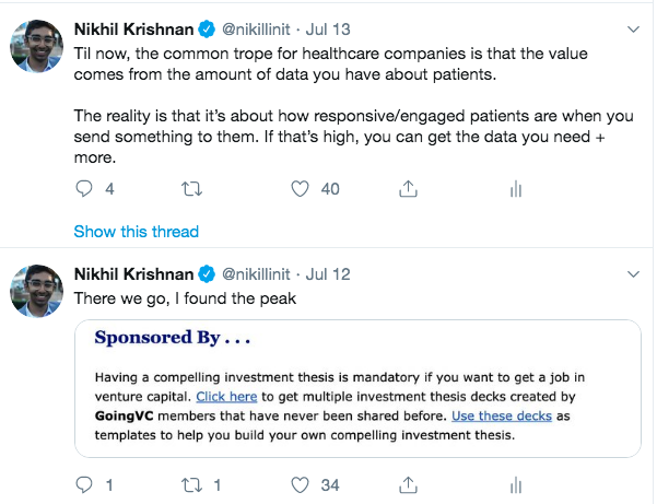 This is the function Twitter and writing plays in my life. By constantly broadcasting my interests/personality on the internet, you have a pretty decent sense of whether or not you wanna kick it with me. If you’re into healthcare, memes, internet culture, and self-deprecating humor, it’s pretty likely we’ll be friends.