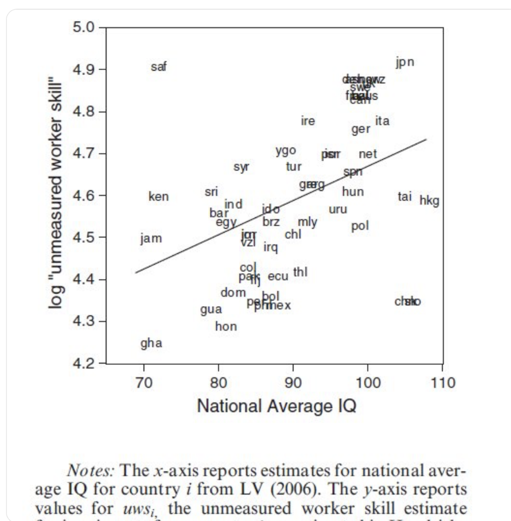 [In fact the seminal study says "for 104 of the 185 countries, no studies were available" and they computed the numbers… from ethnicity. Aside from intransivity of correlation, this is pure fraud.]